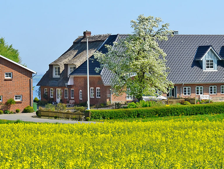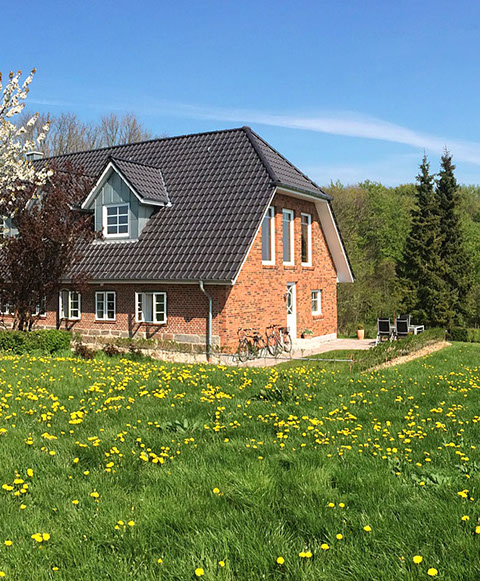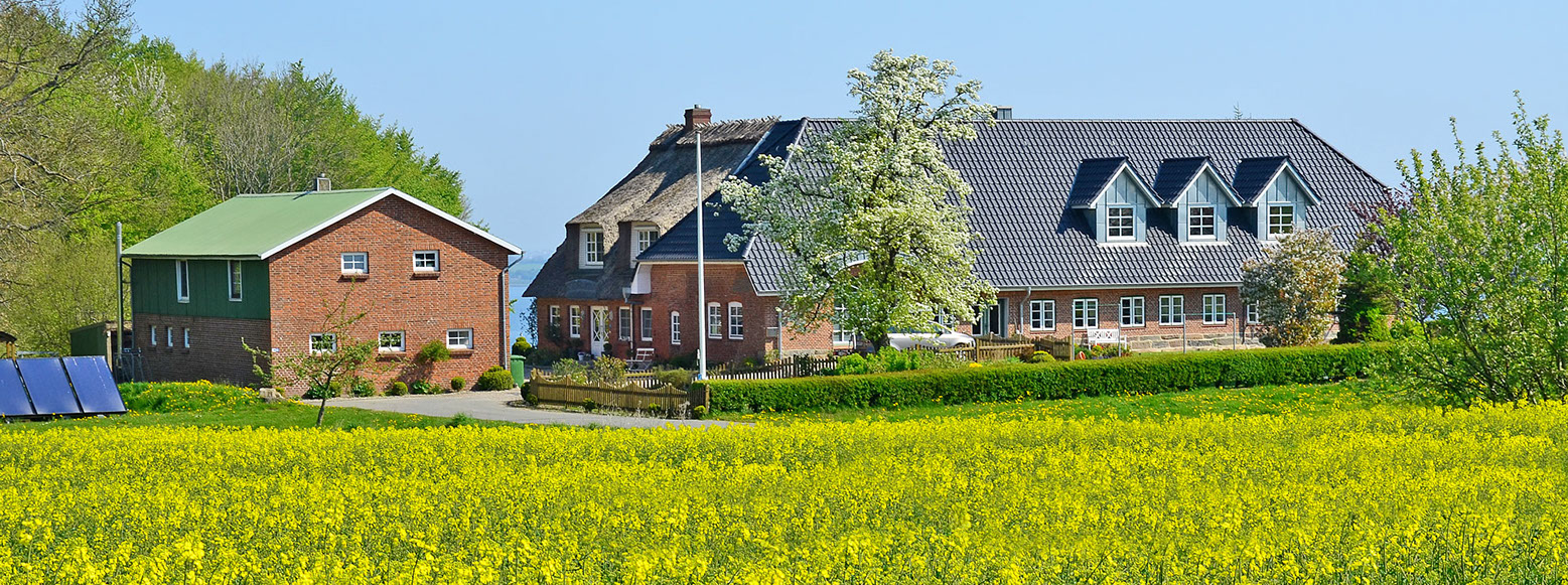 Die Ferienwohnungen befinden sich auf unserem gepflegten Resthof. Das große Grundstück bietet zahlreiche Spiel-, Liege- und Sitzgelegenheiten. Der Hof bildet das Schlusslicht einer Sackgasse. Für Kinder, aber auch für Menschen, welche die Ruhe lieben ist es ein Paradies. Das Haus liegt in Einzelhoflage am Rande eines Waldes und begeistert mit seinem Panoramablick auf die Flensburger Förde und auf unser Nachbarland Dänemark.