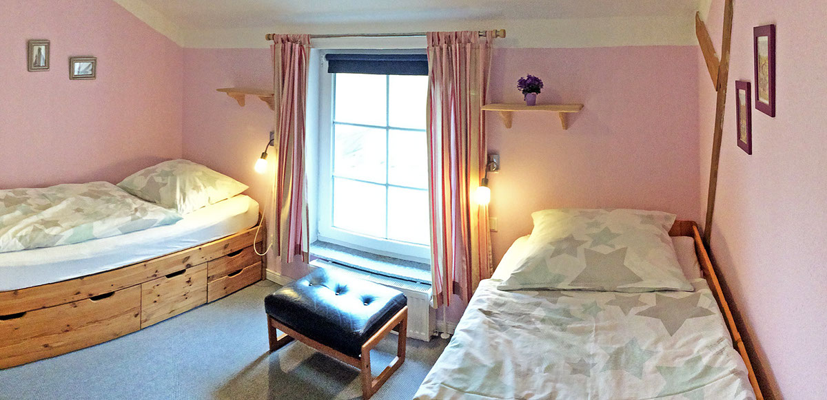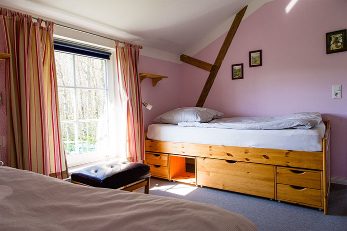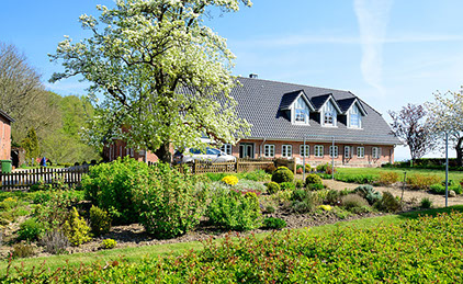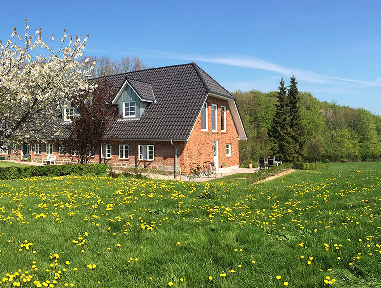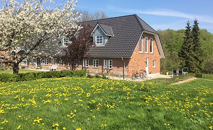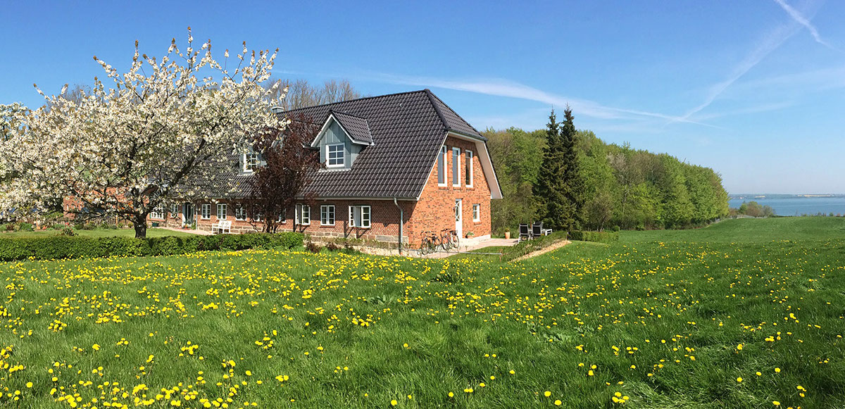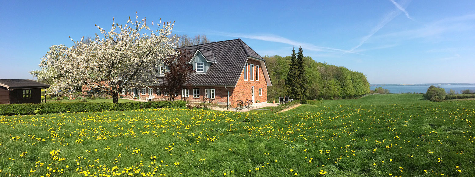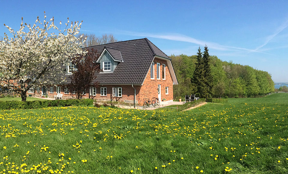 Die Ferienwohnungen befinden sich auf unserem gepflegten Resthof. Das große Grundstück bietet zahlreiche Spiel-, Liege- und Sitzgelegenheiten. Der Hof bildet das Schlusslicht einer Sackgasse. Für Kinder, aber auch für Menschen, welche die Ruhe lieben ist es ein Paradies. Das Haus liegt in Einzelhoflage am Rande eines Waldes und begeistert mit seinem Panoramablick auf die Flensburger Förde und auf unser Nachbarland Dänemark.